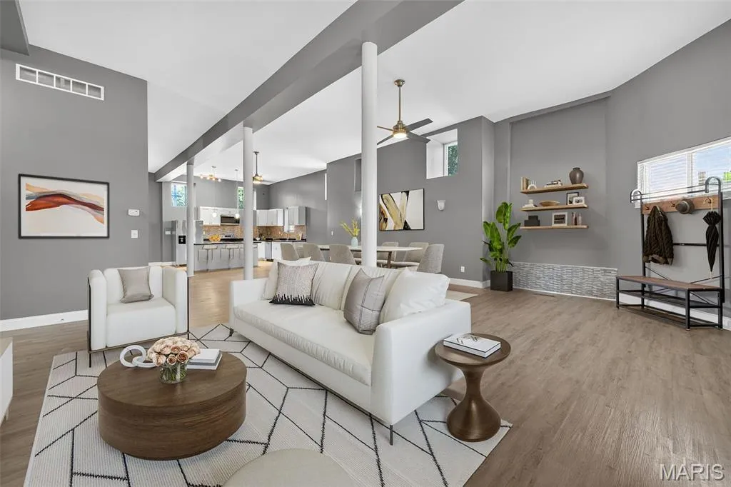 Interior Features : Open Floorplan, High Ceilings, Walk-In Closet(s), Custom Cabinetry, Eat-in Kitchen, Shower, Kitchen/Dining Room Combo, Breakfast Bar, Breakfast Room, Kitchen Island, Double Vanity, Walk-In Pantry
