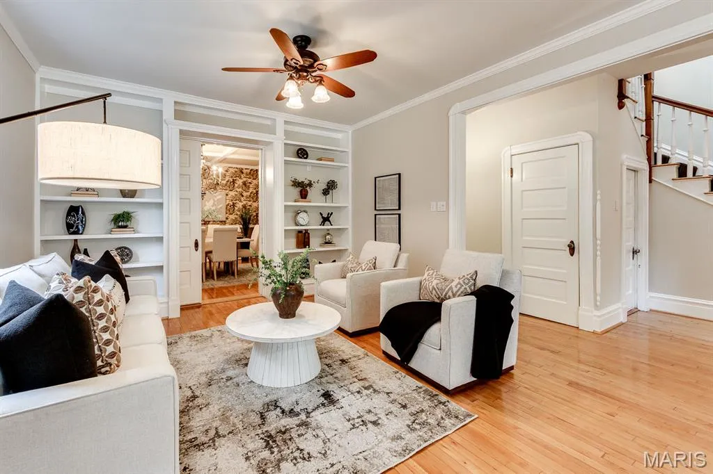 Interior Features : Bookcases, Separate Dining, Eat-in Kitchen, Granite Counters, Entrance Foyer, Historic Millwork, Kitchen Island, Ceiling Fan(s), Double Vanity, Separate Shower, Built-in Features, Crown Molding, Recessed Lighting, Soaking Tub