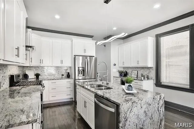 Phenomenal Gut rehab in the heart of Historic Soulard**5 bedrooms, 3 full baths, 2 car covered parking. This property has a main floor bedroom with full bath**A stunning kitchen with all the upgrades (granite counter tops, stainless steel appliances,coffe bar/ bar area) with dining/living area, open concept**second floor has a private primary suite with a luxury bath(double vanities, soaking tub and double shower) super deep closet, second floor laundry with washer and dryer**3rd bedroom with full guest bath**third level boasts two bedrooms with large closets that has numerous uses**This home has 3/4 inch real hardwood floors, solid wood doors, systems, sewer line with pvc, zoned HVAC 2024***Private fenced back yard, huge custom deck and covered secured parking. Pristine lower level, perfect for future expansion. All this with in walking distance to restaurants, bars, shops, and Anheuser Busch***Soulard is know for the community of gardens and parks.