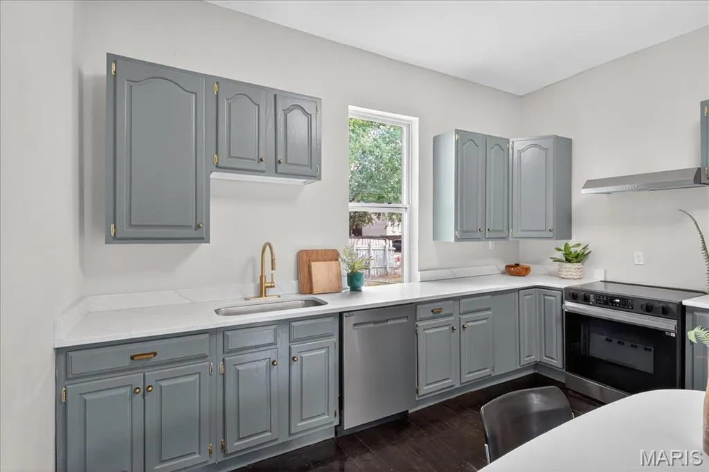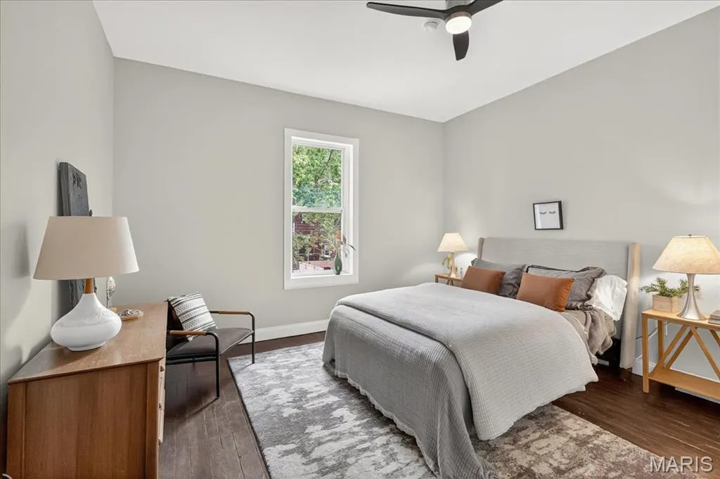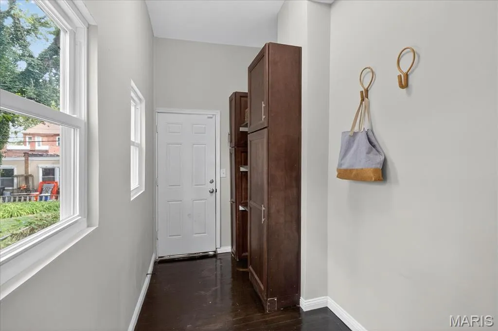 Welcome to 3236 Texas Avenue, a beautifully updated brick home in the heart of Benton Park West! This charming two-bedroom, two-bath residence blends classic character with modern updates. Step inside to find dark-stained hardwood floors throughout and a bright living room flowing seamlessly into the eat-in kitchen. The kitchen is a showstopper with green shaker cabinets, quartz countertops, and stainless steel appliances. A convenient mudroom off the side entrance adds extra storage and function. Upstairs, discover two bedrooms, a stylish full bath, and the rare luxury of second-floor laundry. Generously sized bedrooms include ample closet space, while high ceilings and large windows create an airy feel throughout. A full bathroom on each level with hexagon mosaic floor tile and beautiful marble style shower surround. The home also features updated electrical, plumbing, light fixtures, cosmetics/finishes and air conditioner, ensuring peace of mind for years to come. Enjoy the curb appeal of a freshly painted exterior with natural wood shutters and a welcoming front porch. Located near restaurants, shops, and parks, this home offers the perfect mix of comfort, style, and convenience.