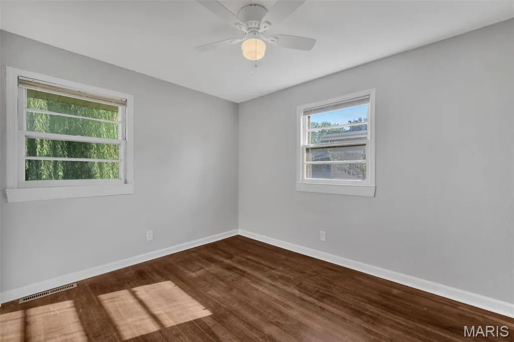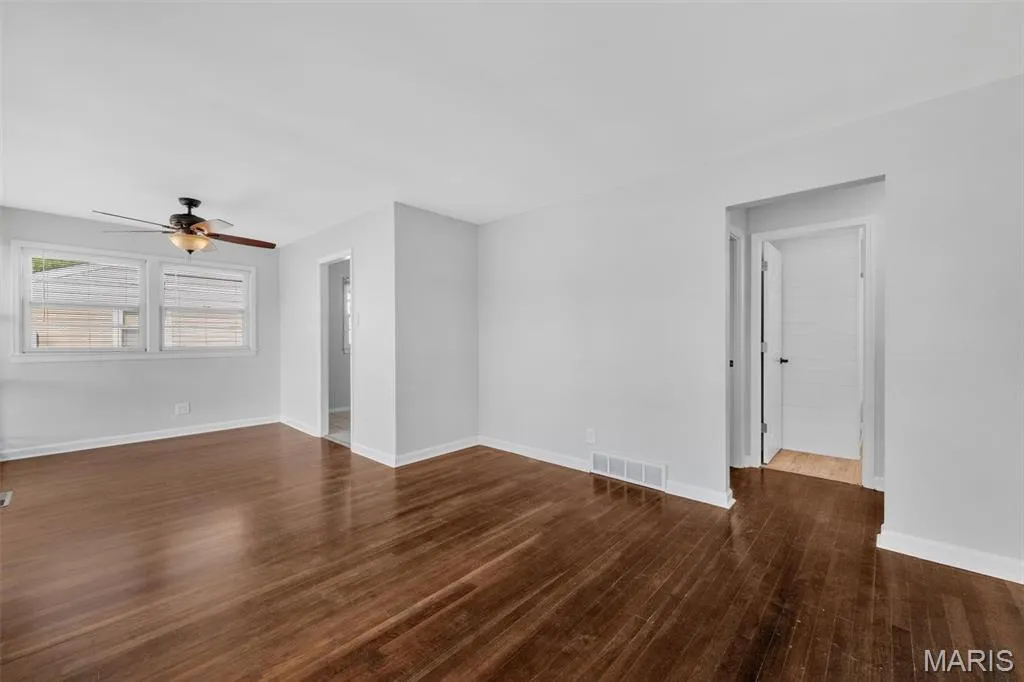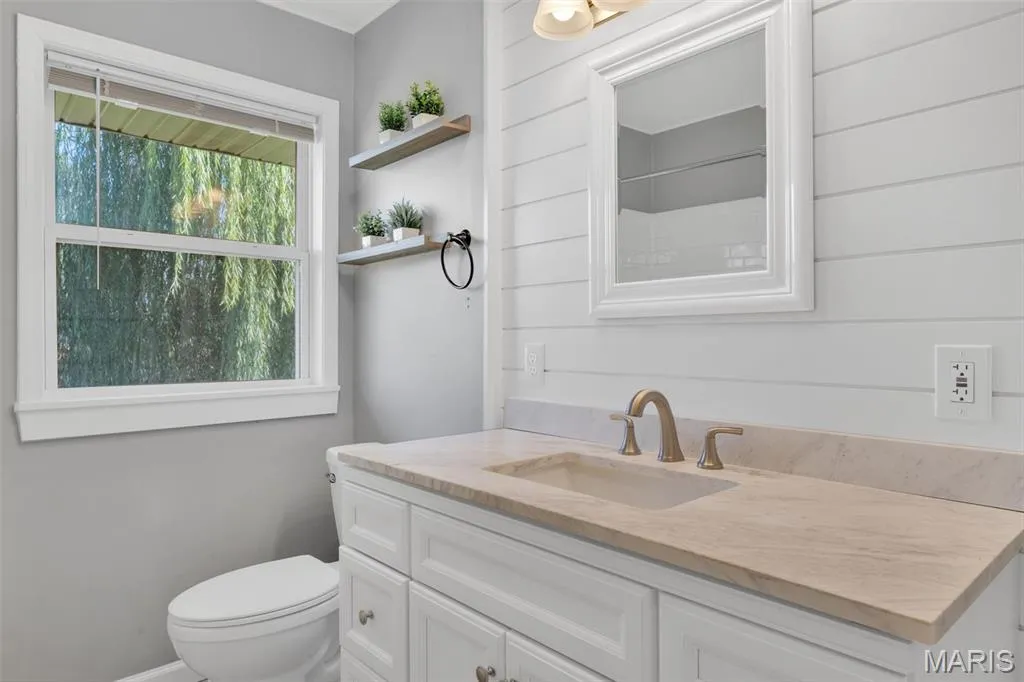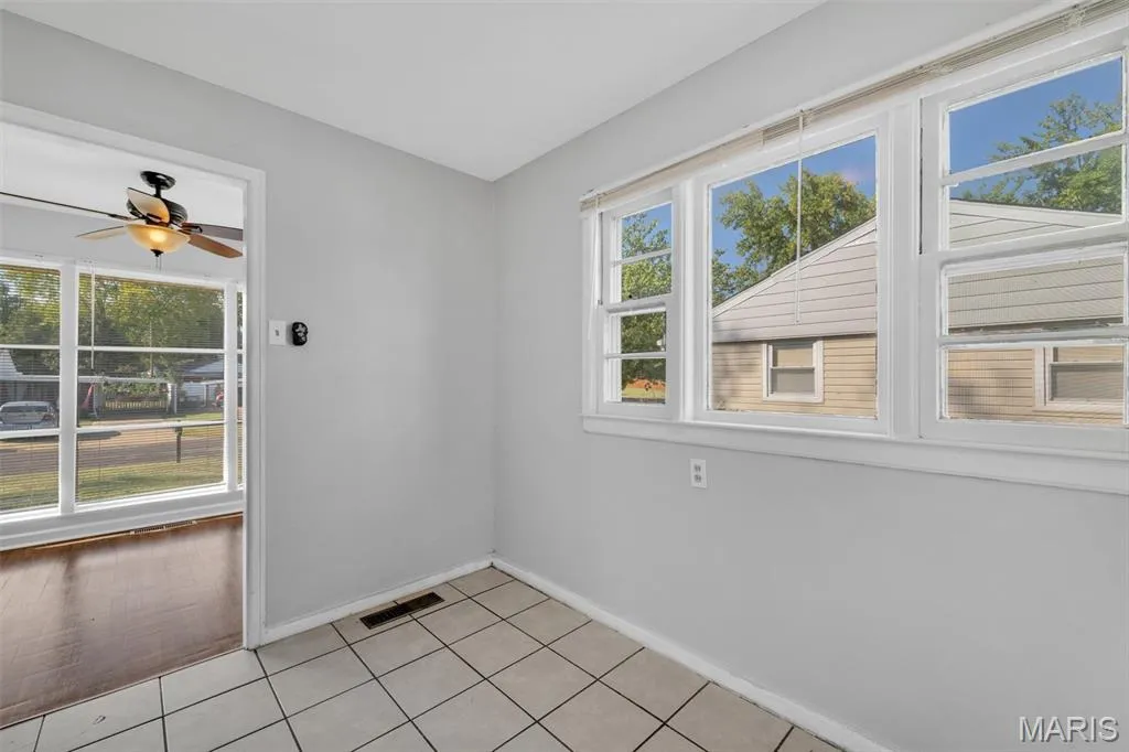 Meet Westy! He’s a cutie and is perfectly situated in the heart of Jefferson Barracks Park! This home offers the best of both worlds—peaceful surroundings with easy access to shopping, dining, and major highways. Its primary features include 3 bedrooms and 1 bath, gorgeous hardwood flooring throughout, and a bright open floor plan highlighted by large picture windows that flood the home with natural light. The adjoining dining and living room make an inviting space for entertaining. The updated kitchen boasts white 42″ cabinets, ceramic tile flooring, stylish backsplash, and black and stainless appliances. The full bath is a showstopper with features subway tile, shiplap, a new vanity, and a sleek mirror & lighting. Each room provides generous closet space, with additional built-ins for convenience. The full unfinished lower level is clean and ready for your finishing touches. Step outside to enjoy the fenced backyard and patio—perfect for gatherings or quiet evenings. One of my favorite features just very well may be the weeping willow tree! On trend paint throughout, newer lighting and fans, plus peace of mind with a 4-year-old roof and 4-year-old water heater. All that’s left for you to do is move in and enjoy!