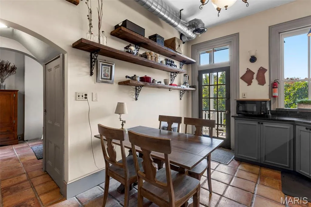 Interior Features : Open Floorplan, Bookcases, Special Millwork, High Ceilings, Custom Cabinetry, Eat-in Kitchen, Granite Counters, Pantry, Storage, Dining/Living Room Combo, Kitchen/Dining Room Combo, Historic Millwork, Kitchen Island, Beamed Ceilings, Built-in Features, Chandelier, Crown Molding, Recessed Lighting, Natural Woodwork, Country Kitchen