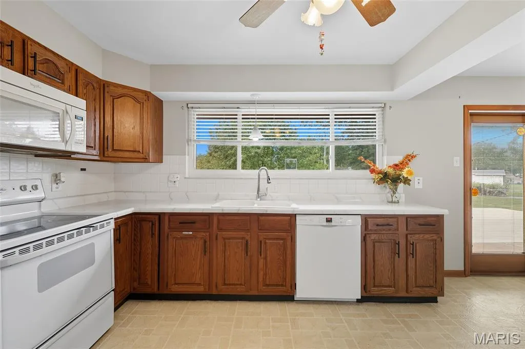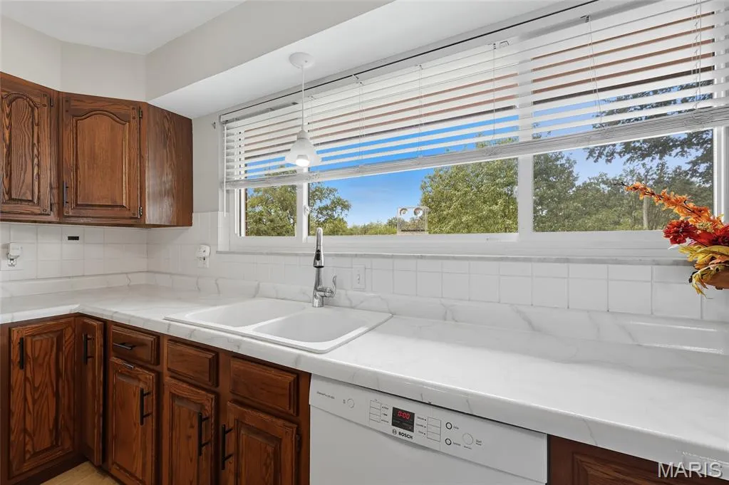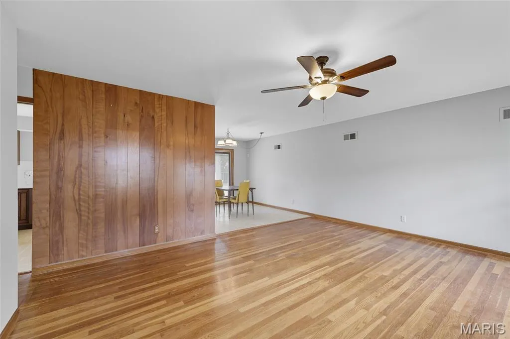 This charming home offers wonderful curb appeal with a full brick and cedar exterior, a very large and level front yard, and an oversized covered front porch perfect for relaxing. Inside, the main level features beautiful hardwood floors, a spacious living room filled with natural light, and a large kitchen with a breakfast area, plenty of cabinet and counter space, and room to entertain. Three bedrooms are located on the main level, including a primary suite with a private en-suite bath. The walkout lower level has been partially finished with brand-new LVP flooring and adds impressive additional living space. Highlights include a huge family room, a bar area ideal for gatherings, enough room for an office space, and another oversized room that can be customized for hobbies, a gym, or extra storage. Step outside to a large patio complete with a fire pit, a shed for added storage, and a half-acre lot with room to garden or play. Additional amenities include an attached two-car garage, private street location, and convenient access to shopping, dining, and more. A perfect combination of space, character, and functionality inside and out.