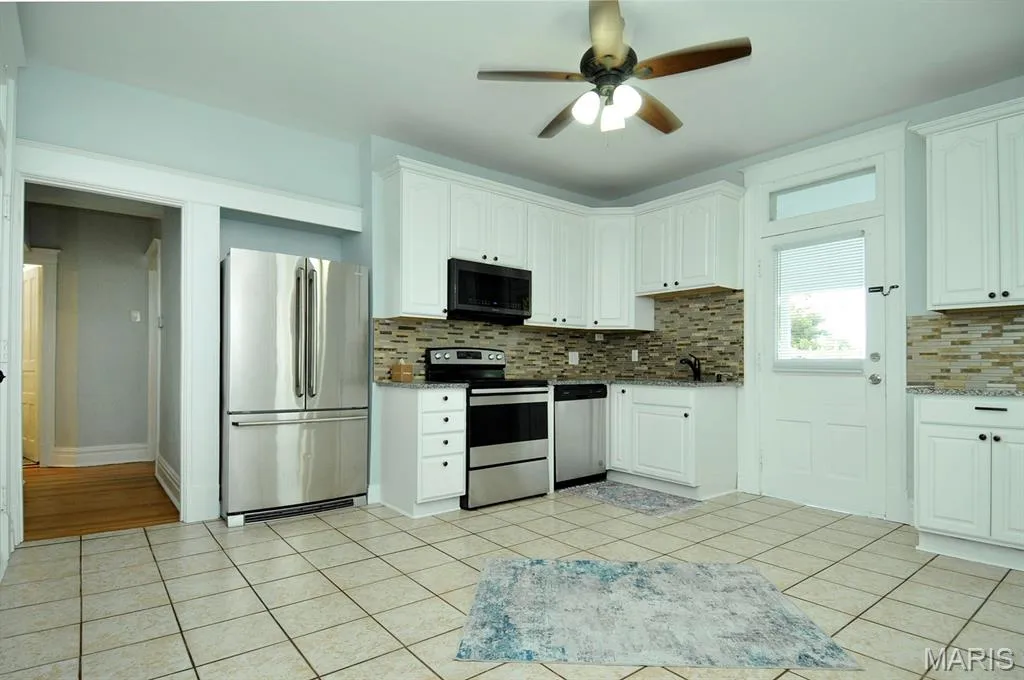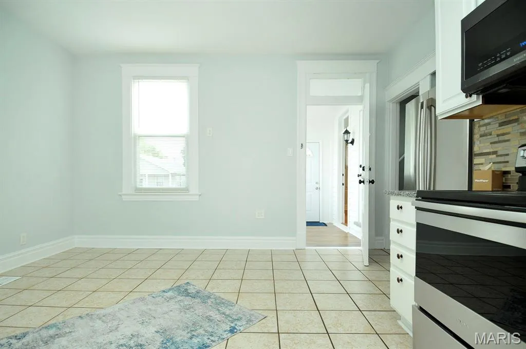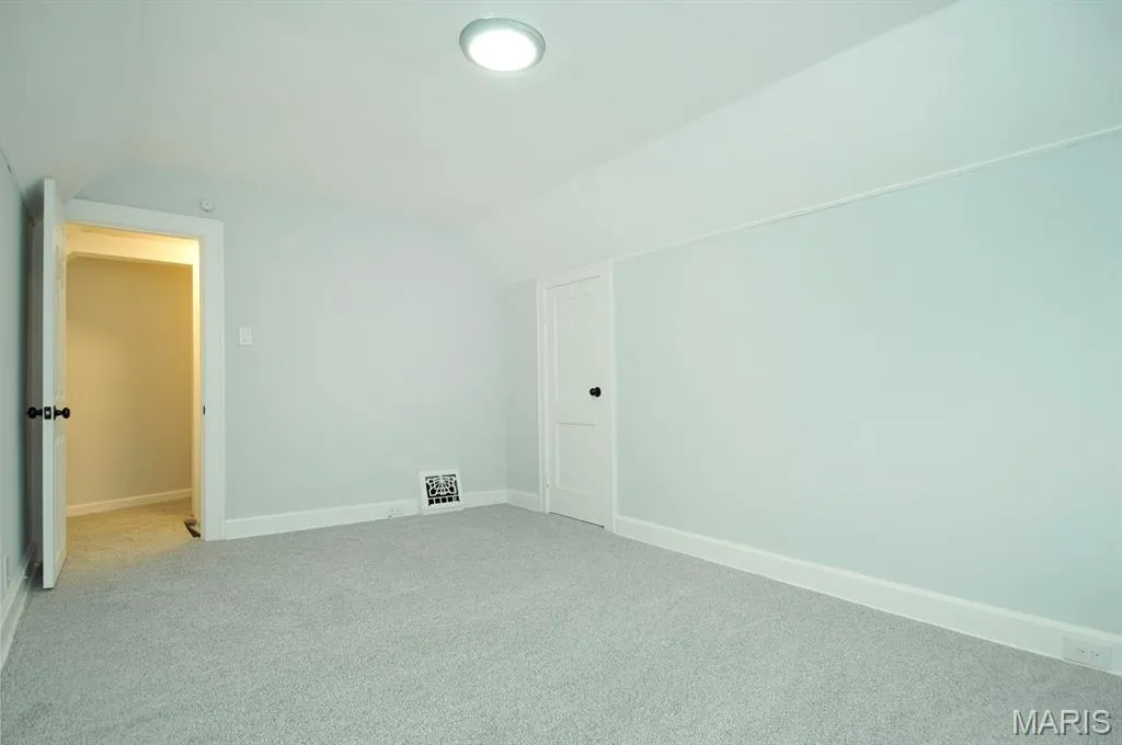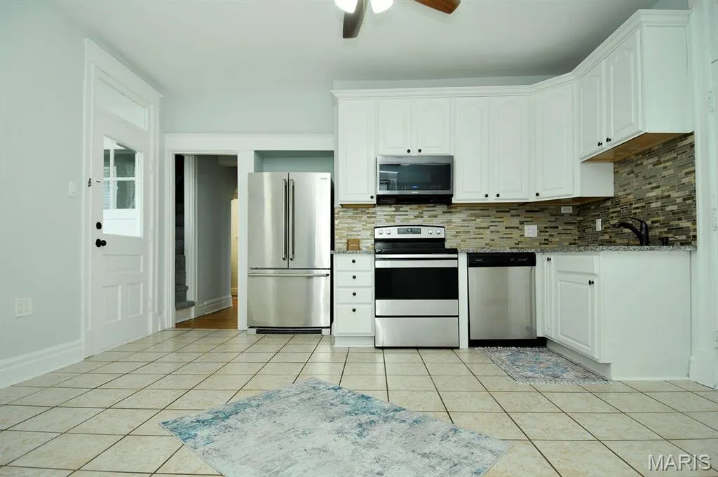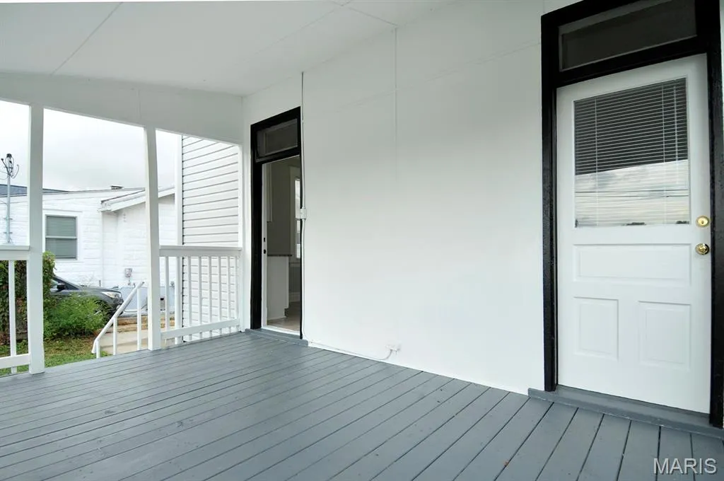 Updated 1.5 story, 3 bedroom, 1.5 bathroom home located in convenient South St Louis City neighborhood. Main floor offers large eat in kitchen with white kitchen cabinets, granite counter top and access to nice size covered deck. Main floor bedroom also with access to the deck, full bathroom and large living room. Second floor offers 2 bedrooms, 1/2 bathroom and 2nd floor laundry. Clean full walk up basement. Partially fenced flat back yard and private concrete parking spot. Very convenient location, close to grocery store, area restaurant and public transportation.