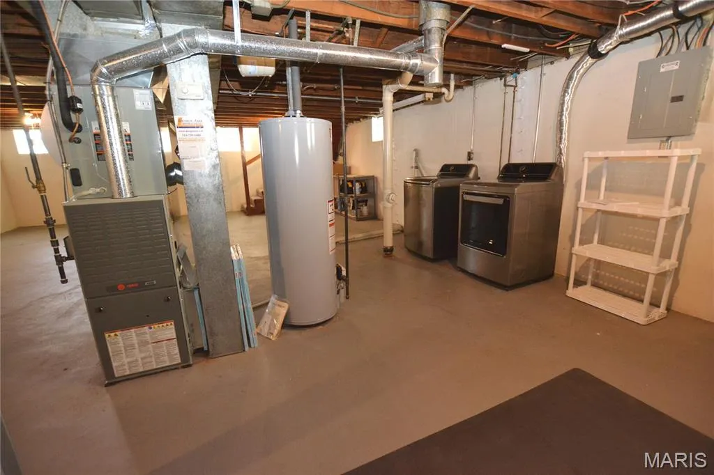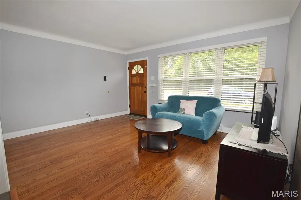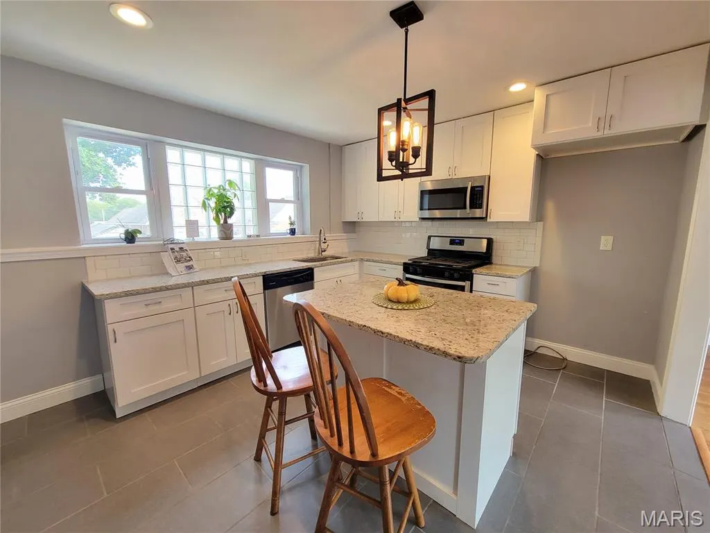 Welcome home to this beautiful all brick ranch! As soon as your walk in you will love the open floor plan! Large Living room with Hardwood Floors, 3 large windows let the natural light in, plus 5 1/4” baseboards. The Fantastic Kitchen was updated in 2018 and features 42″ white cabinets with soft close drawers, GRANITE countertops, subway tile backsplash, a shiplap wall, pantry with barn door and stainless appliances! Plus a large island! Room for table and chairs. The Unique kitchen window has a glass block window with 2 side windows. Pretty updated bathroom in 2018 with a new tub, adult height vanity and subway tile! Bedrooms have hardwood floors and ceiling fans. 3rd BR has a gray barn door. Nice clean lower level with newer washer and dryer that stay. Roof 30 yr Arch shingles 2018, Furnace/AC/Humidifier 2019. Sewer Lateral work 2025, plus an EV Charging Station 2023 . Have fun in the level backyard with patio, shed and parking pad. Passed St Louis County Occupancy Inspection. Great location, you could walk to schools. Really a wonderful place to call home!