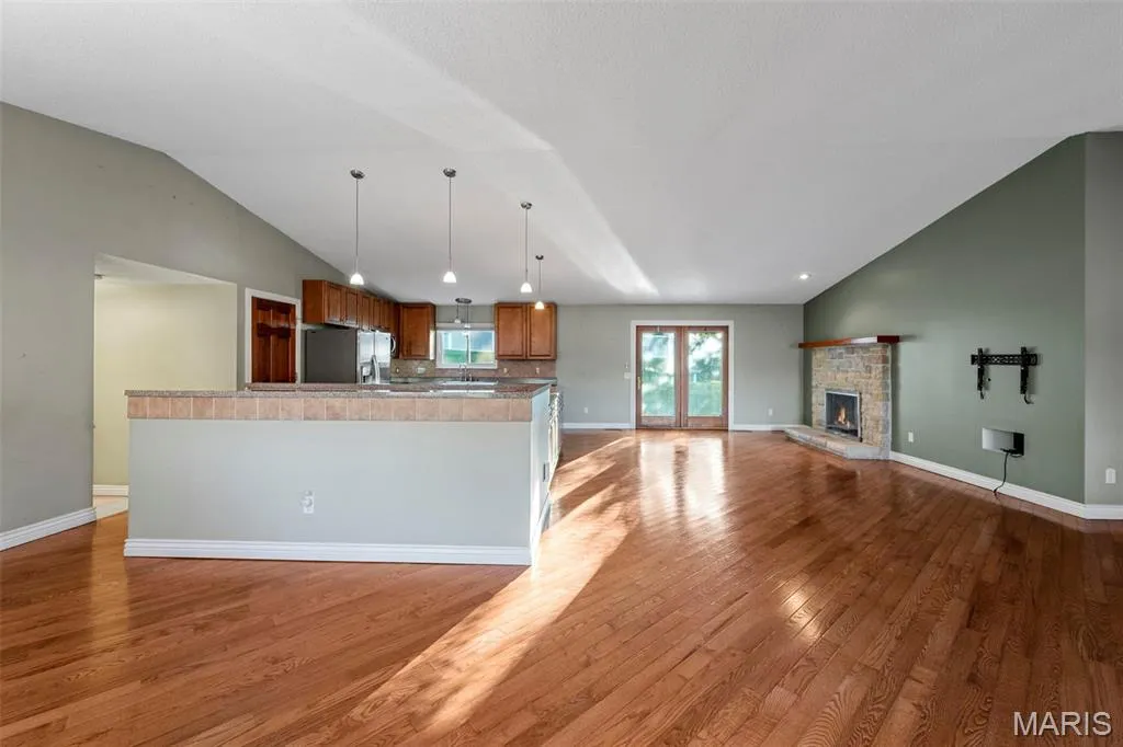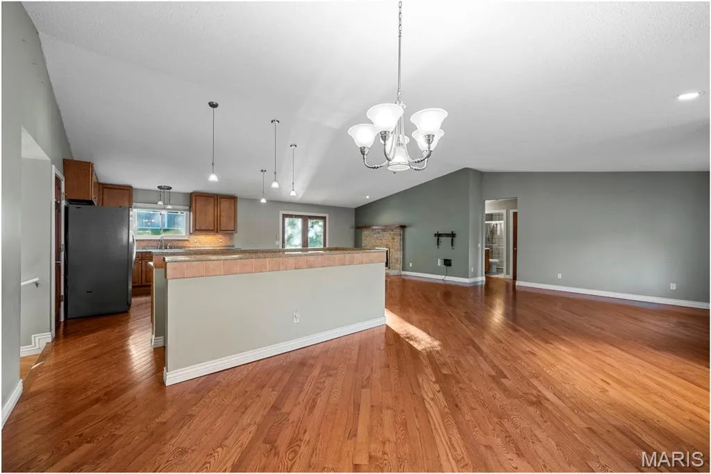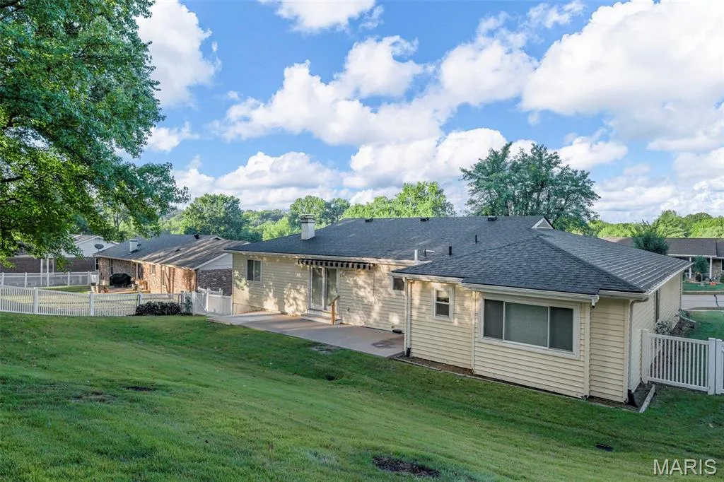 Welcome to this beautifully updated 3 bedroom, 2 bath home in Rockwood School District in Fenton just off hyw 141 near Gravois. The home features an open divided floor plan with hardwood floors, a spacious primary suite on one side and 2 generous secondary bedrooms on the other. The kitchen is updated with stainless steel appliances and tile backsplash. The open floor plan offers ample living space and includes a wood burning fireplace. There is a walkout to the large patio and fenced yard. Both baths have been tastefully updated. For added convenience the spacious laundry room is off the kitchen. Partially finished lower level has a rough in for a fill bath, adds additional living space and a bar and pool table for entertainment. Plenty of storage space. Enjoy peace of mind with a new roof and gutters as well as other major system updates.
