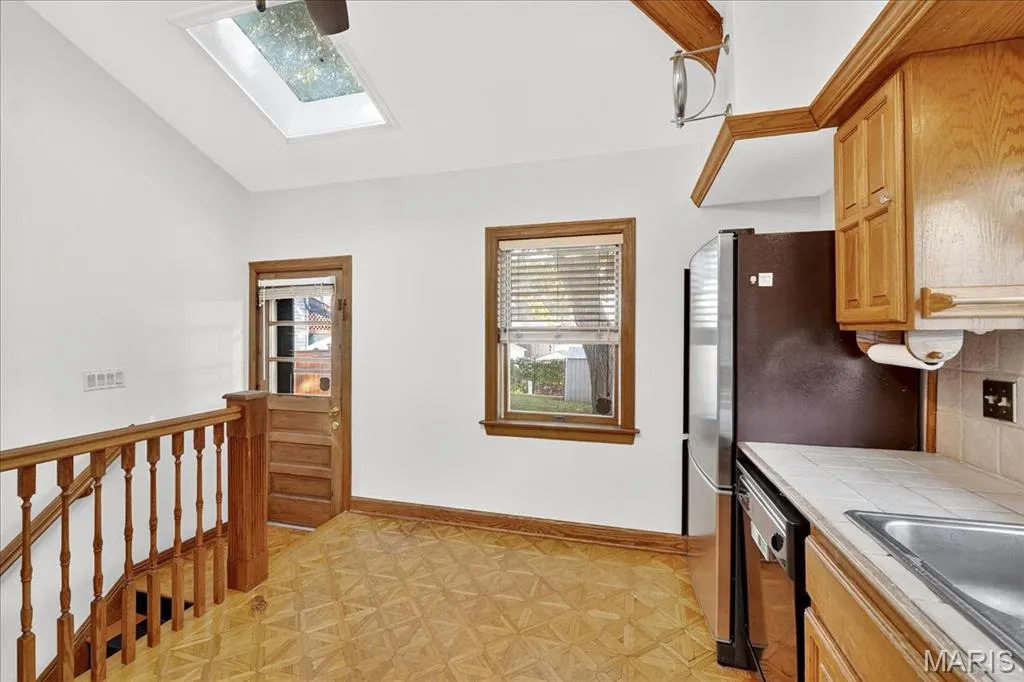 Welcome to this wonderful 2 bed/2 bath all-brick ranch with a BRAND NEW roof & tons of character! The moment you step inside you’ll marvel at the original hardwood flooring stretching throughout the main floor lending a cohesive flow to the semi-open floorplan. The adjacent living & dining rooms both include coved ceilings & offer ample space to entertain your guests. A soaring vaulted ceiling with exposed wood beam & dual skylights stretches above the freshly painted kitchen where you’ll also find custom cabinetry, pantry with pull-out shelves, ceramic tile backsplash, sunny greenhouse window. 2 beds & full bath complete the MF. Head on down to the finished LL, which tremendously expands your functional space with a huge family room, sleeping area, storage space, & an additional full bathroom. Out back you will find a private patio & level fenced-in yard with convenient utility shed.