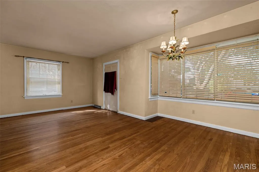 Here’s your opportunity in Brentwood! This charming brick bungalow in a great location is just waiting for new owners to make it their own! A large covered porch greets you, leading you inside to the bright living and dining area, complete with an archway and hardwood floors that continue throughout the main level. The kitchen features classic black-and-white tile and plenty of natural light. A full bath with a newer vanity and tile-surround tub, plus two spacious bedrooms complete the space. The unfinished basement adds storage space and has double doors allowing for easy backyard access. The roof, furnace, and AC are all under to years old, giving peace of mind. You’ll have off-street parking and a large fenced backyard. You’ll be just steps from Mark Twain Elementary and the new Brentwood Park! Moments from all of the shopping and restaurants that Brentwood has to offer, this home is one you won’t want to miss! Roof, furnace and AC are under 10 years old. Home to be sold in as-is condition. Seller to do no inspections or repairs.