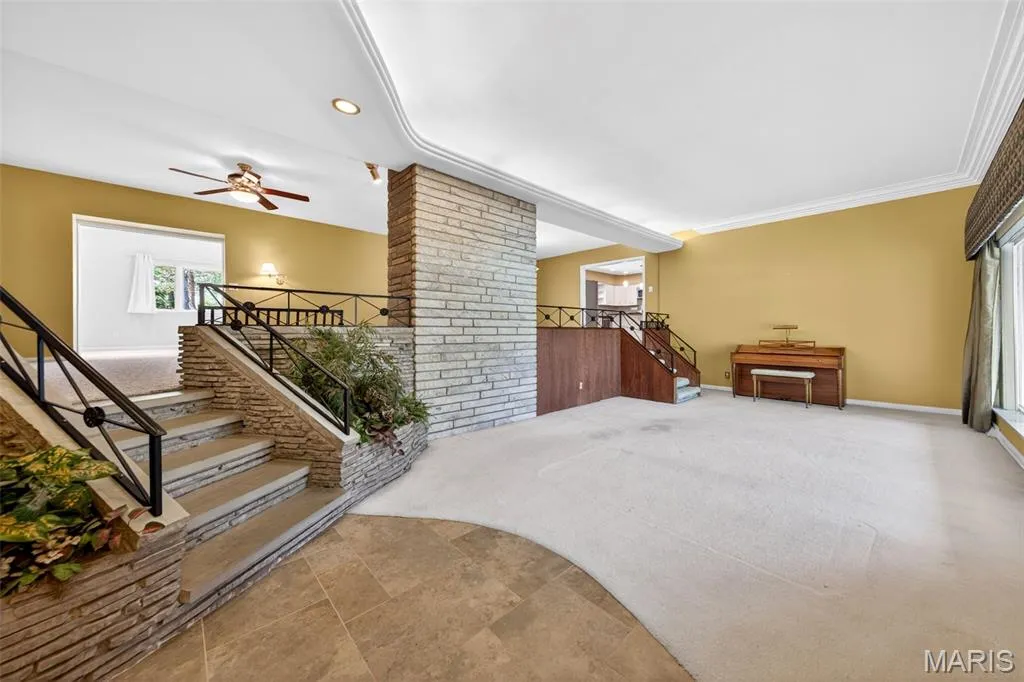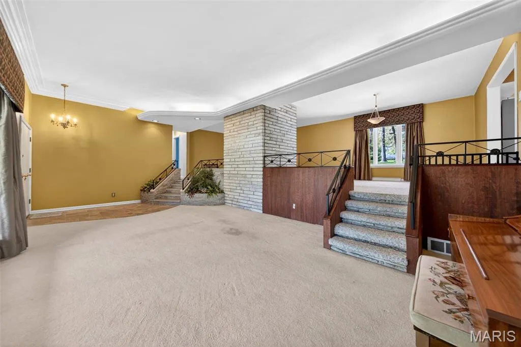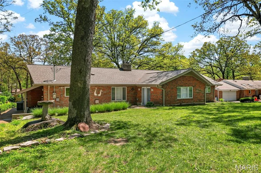 Discover a truly unique floor plan set on a beautiful, open lot just under half an acre in the heart of Grantwood Village, within the highly sought-after Lindbergh School District. This 3-bedroom, 2-bath brick home offers a rare blend of mid-century character and modern updates, all surrounded by exceptional outdoor space.